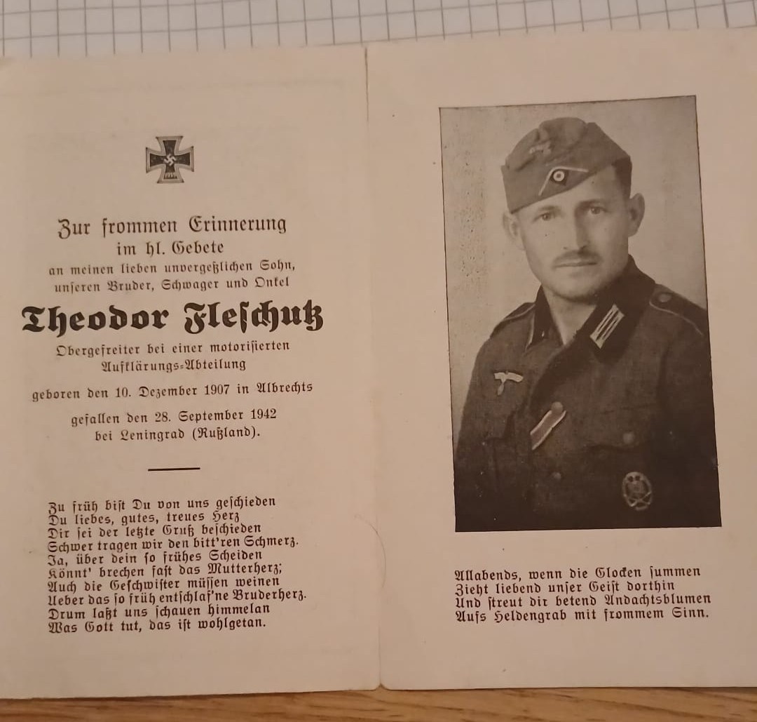 | Theodor | *10.12.1907 in A. 🛠Soldat †28.09.1942 bei Leningrad, Russland {Sterbebild} |